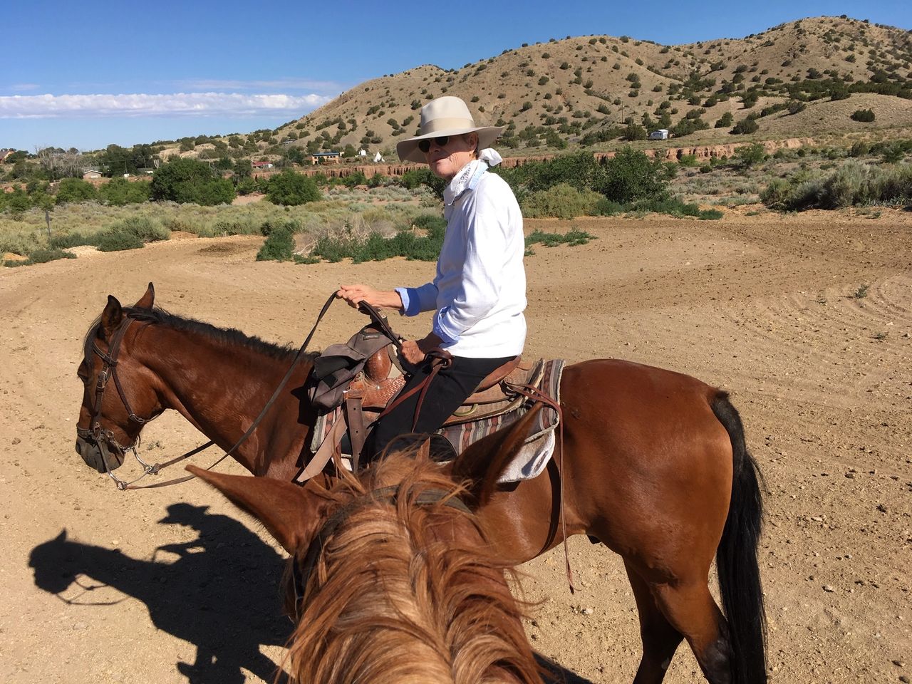 Our saddles are backed by a 100 horse and rider fit guarantee. Each saddle is hand-crafted in our facility in San Angelo Texas. Our guide and my friend John We ride through the scenic hills and high desert ranch from the historic mining town of Cerrillos New Mexico.